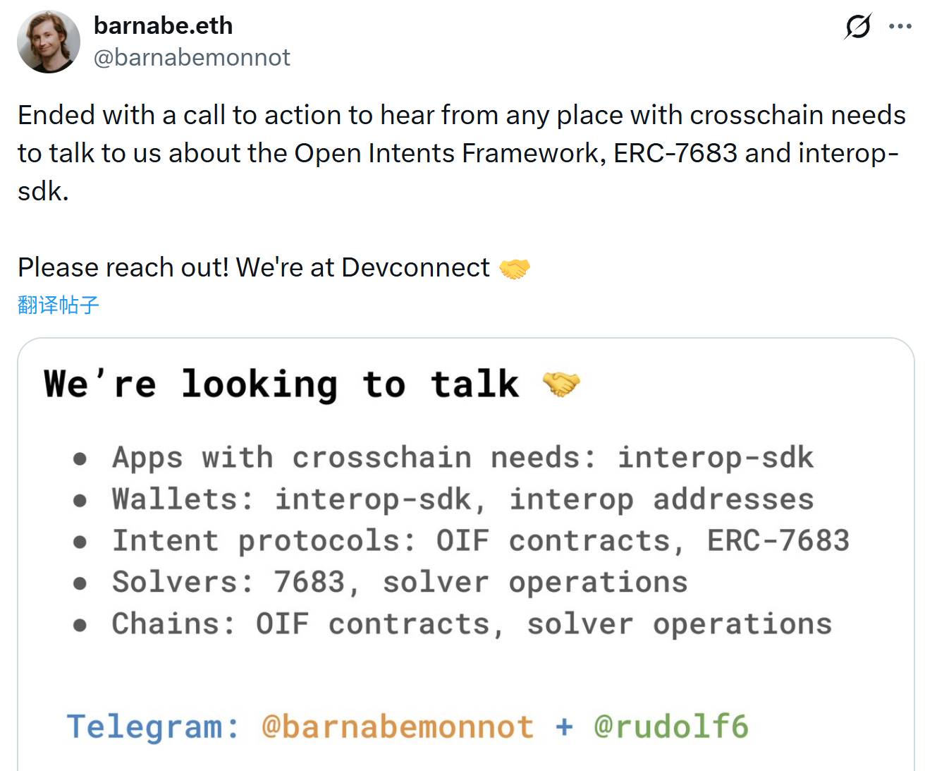 在 Devconnect 期间,围绕 ERC-7683 的讨论确实在进一步深化,越来越多的开发者、Solver 和做市商开始加大对这一标准的支持,这标志着跨链意图交易正在从私有协议走向公用设施。