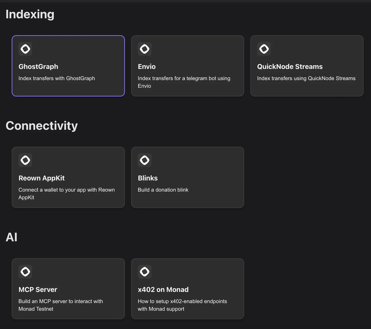 其中包括如何使用索引器、钱包连接 SDK,甚至 MCP 和 x402 应用的详细指南!