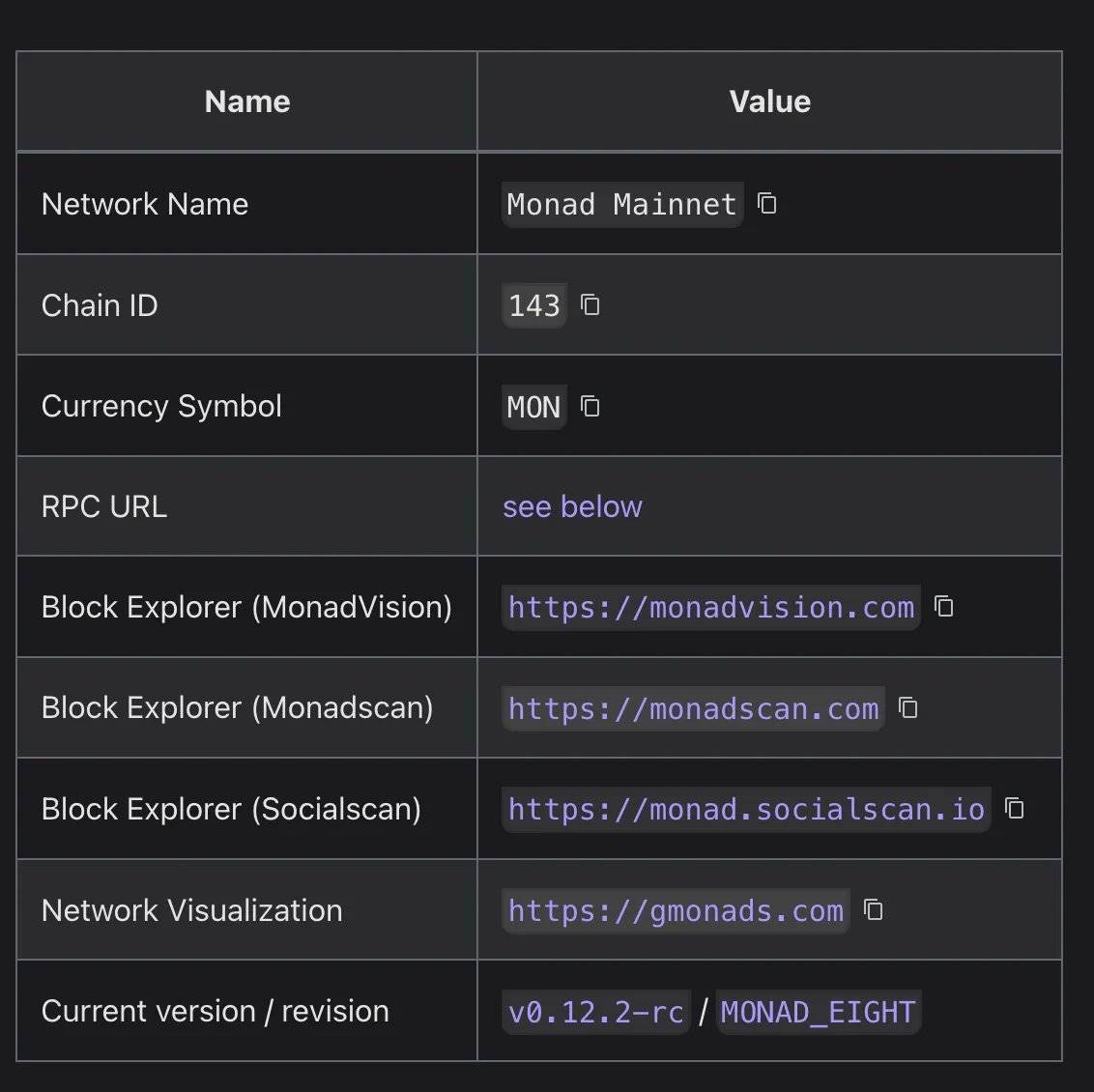 图:Monad 主网网络信息
