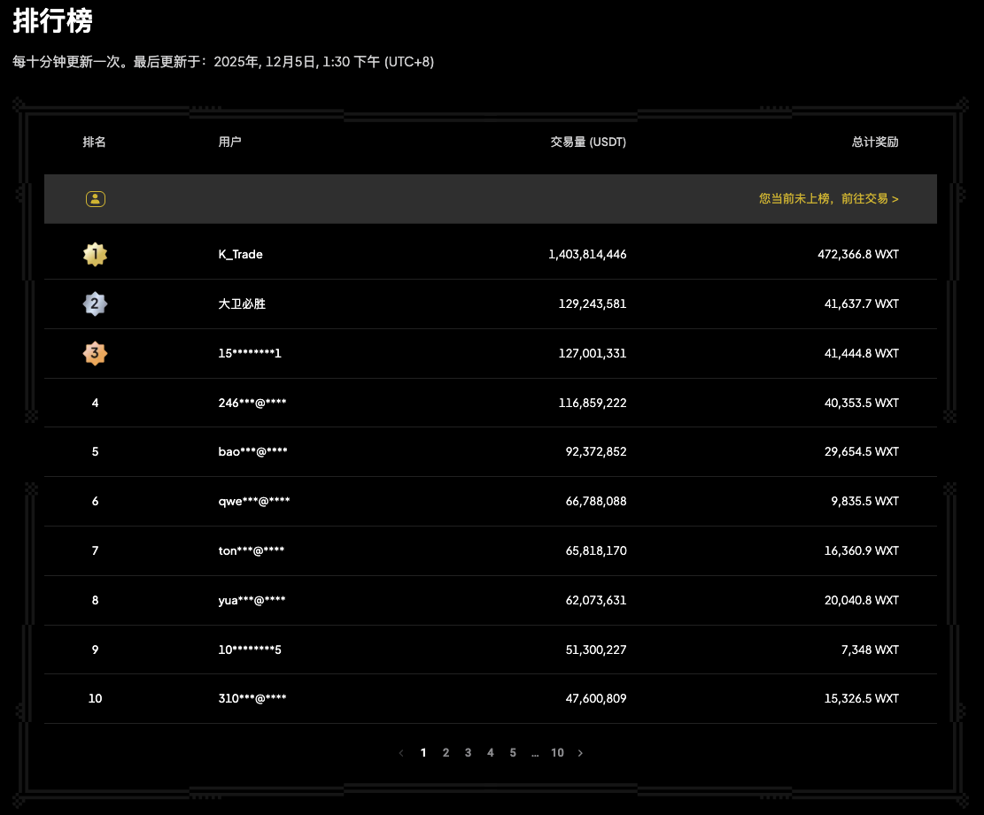 值得一提的是,用户通过交易获得的WXT 奖励无需锁仓或质押,不占用资金流动性,操作简单且门槛极低,用户可随时选择提取或结束交易,适合各类合约交易交易者参与。