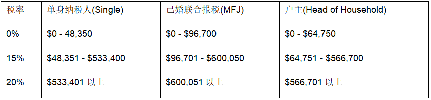 (1)如果加密矿企属于穿透实体,则不需要缴纳联邦所得税,但需要公司股东就其利润份额申报个人所得税。加密货币的取得和交易环节所涉税种包括普通收入税和资本利得税。首先,穿透实体通过挖矿、质押、空投等途径获得的加密货币,要求股东在个人层面按普通收入申报纳税(税率 10% 至 37%)。其次,当穿透实体出售、兑换或消费加密货币时,股东也需要缴纳资本利得税。如果持有时间小于或等于一年,收益作为短期资本利得,按普通收入税率征税,税率区间为 10% 至 37%;如果持有时间大于一年,收益作为长期资本利得,则享受 0%、15% 或 20% 的优惠税率,具体取决于应纳税所得额(如图)。