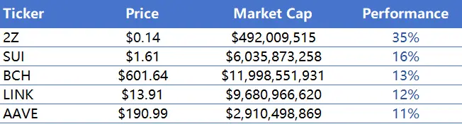 过去一周内涨幅前五的Meme币