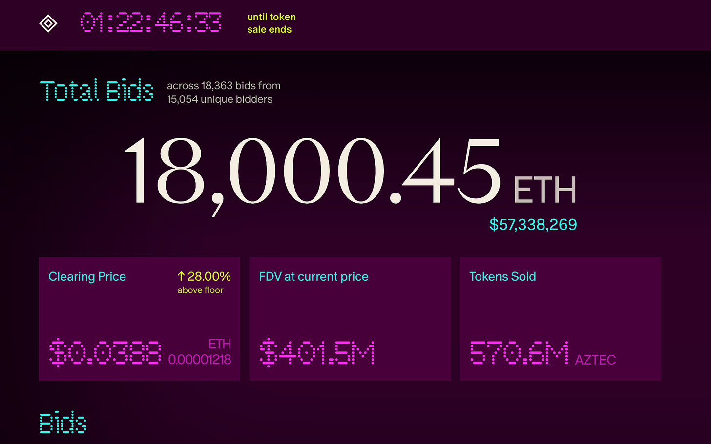 作为去中心化网络的燃料,原生代币 AZTEC 的发行机制本身也体现了项目方对公平性的极致追求。Aztec 摒弃了容易导致机器人抢跑(Sniping)和 Gas 费战争的传统发行模式,联合 Uniswap Labs 引入了创新的「连续清算拍卖(CCA, Continuous Clearing Auction)」。