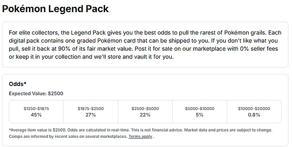 一般来说,这些密封卡包/直播开卡平台的管理费用要比 Gacha 高得多。虽然 Gacha 平台也需要管理和存储卡牌,但它们不必处理采购官方卡包(这是一个巨大的能力限制)、实际打开卡包、扫描卡牌、帮助客户送去评级等工作。这就需要执行成本 仓库成本带来的巨额运营费用。