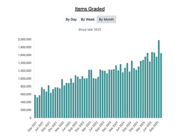 约 65% 的分级量是 TCG,而封装卡评级是将卡片转化为可交易 "资产 "的金融化层。