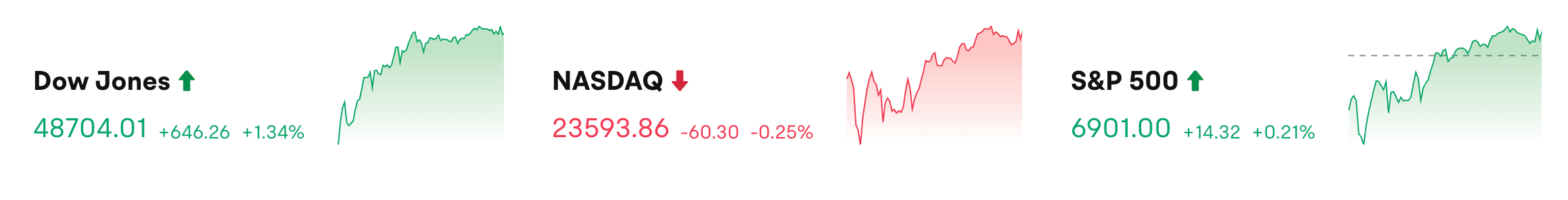 2、美股:道指涨1.34%,标普500指数涨涨0.21%,纳斯达克综合指数跌0.25%。此外,英伟达(NVDA)跌1.55%,Circle(CRCL)涨0.18%,Strategy(MSTR)跌0.73%。