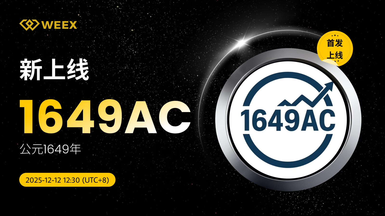 公元1649年 (1649AC) 现已上线WEEX! Weex 2025年12月12日 04:31 微信扫一扫分享到朋友或朋友圈 尊敬的WEEX用户:1649AC/USDT交易对正式上线WEEX。具体安排如下:充值:即将开放交易:2025年12月12日12:30(UTC 8)正式开放提现:即将开放立即交易:1649AC/USDT 公元1649年 (1649AC) 更多信息:1649AC代币源于Eric Larch关于1649年英国革命中查理一世命运的推文,背景为那个动荡时代标志着君主制的终结与共和国的兴起。 X账号交易手续费