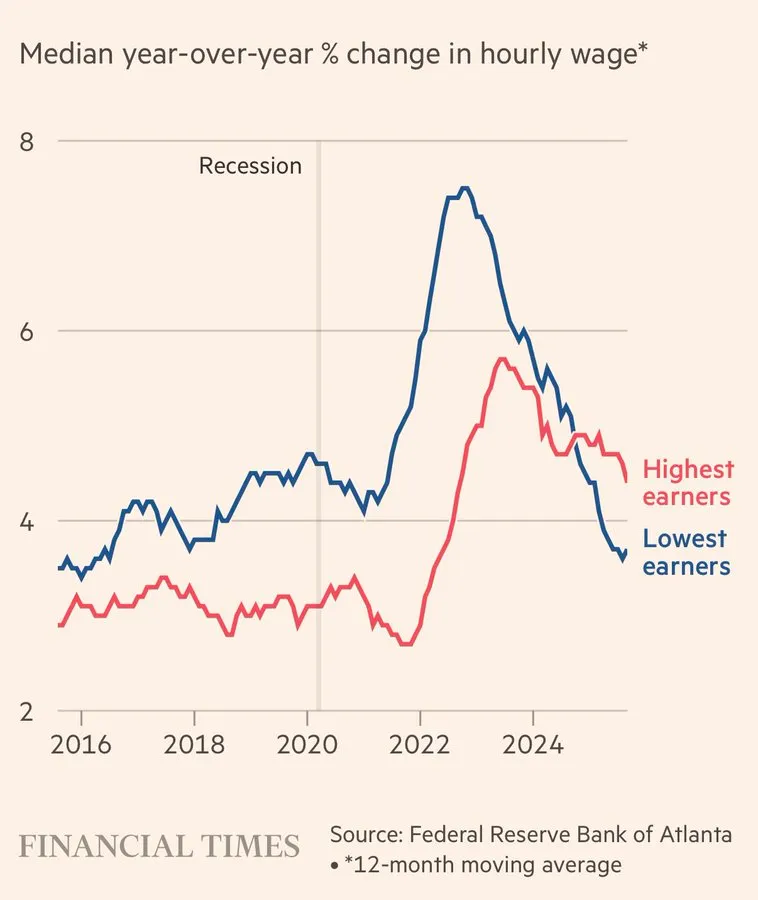 对于第一个问题——美联储昨日降息,引发了许多争议和分歧。他们的双重使命——价格稳定与最大就业——正面临越来越大的压力。通胀并未下降到2%的目标(债券市场对此非常担忧)。劳动力市场正在走弱,不平等问题也在加剧。