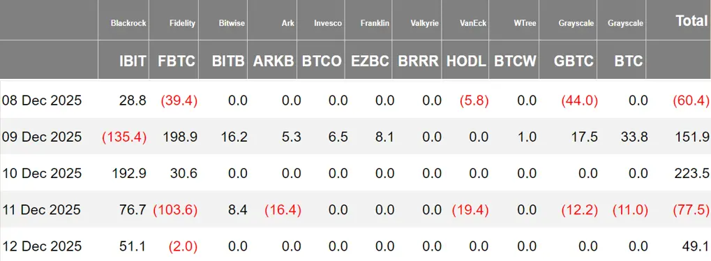 上周 6 只 ETF 处于净流出状态,流入主要来自 IBIT、FBTC、BITB,分别流入 2.14 亿美元、8450 万美元、2460 万美元。
