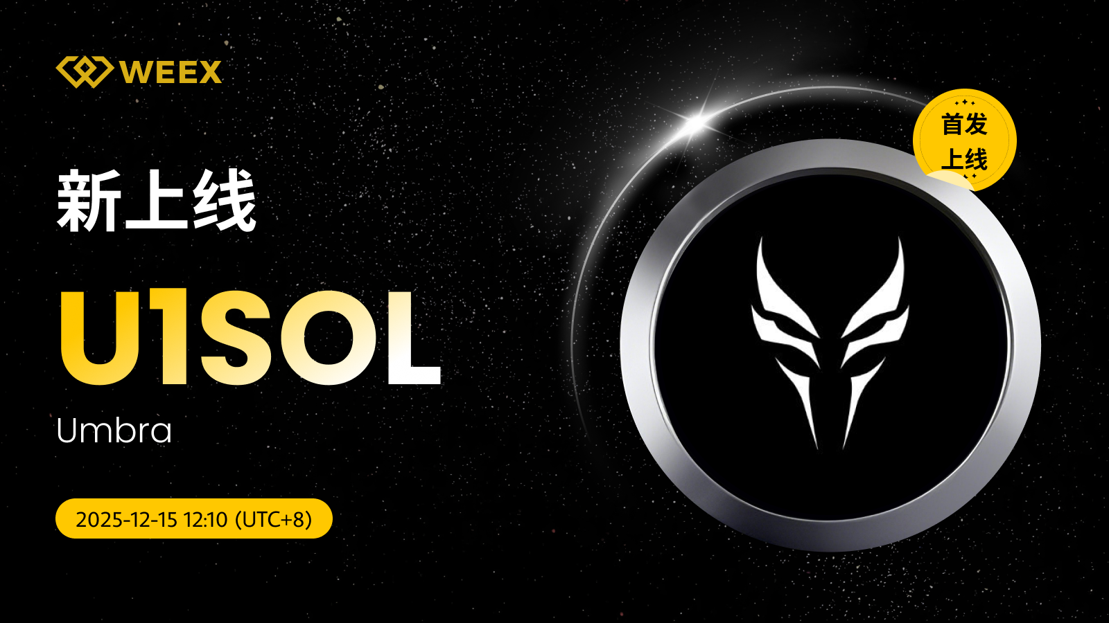 Umbra (U1SOL) 现已上线WEEX! Weex 2025年12月15日 04:23 微信扫一扫分享到朋友或朋友圈 尊敬的WEEX用户:U1SOL/USDT交易对正式上线WEEX。具体安排如下:充值:即将开放交易:2025年12月15日12:10(UTC 8)正式开放提现:即将开放立即交易:U1SOL/USDT Umbra (U1SOL) 更多信息:U1代币源于@Umbrae_Ignis关于神秘阴影力量的推文报道,背景为探索黑暗中隐藏的数字火焰与加密启示。 官网X账号交易手续费