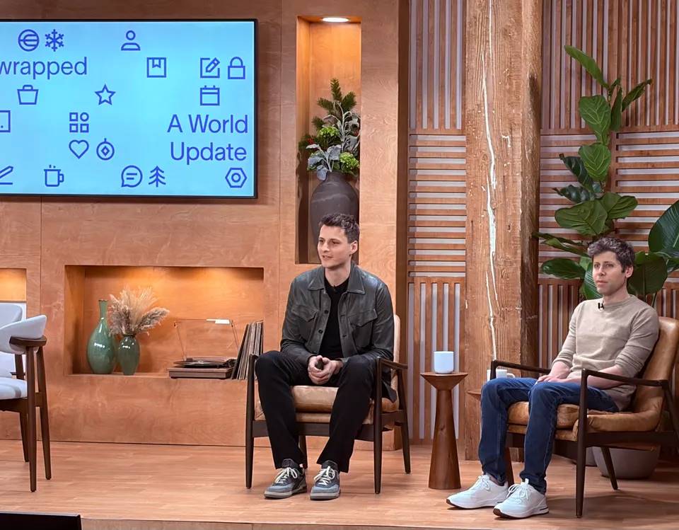 图:亚历克斯·布拉尼亚(Alex Blania)与山姆·奥特曼(Sam Altman)于2025年12月11日在旧金山的“世界解锁”(World Unwrapped)活动上