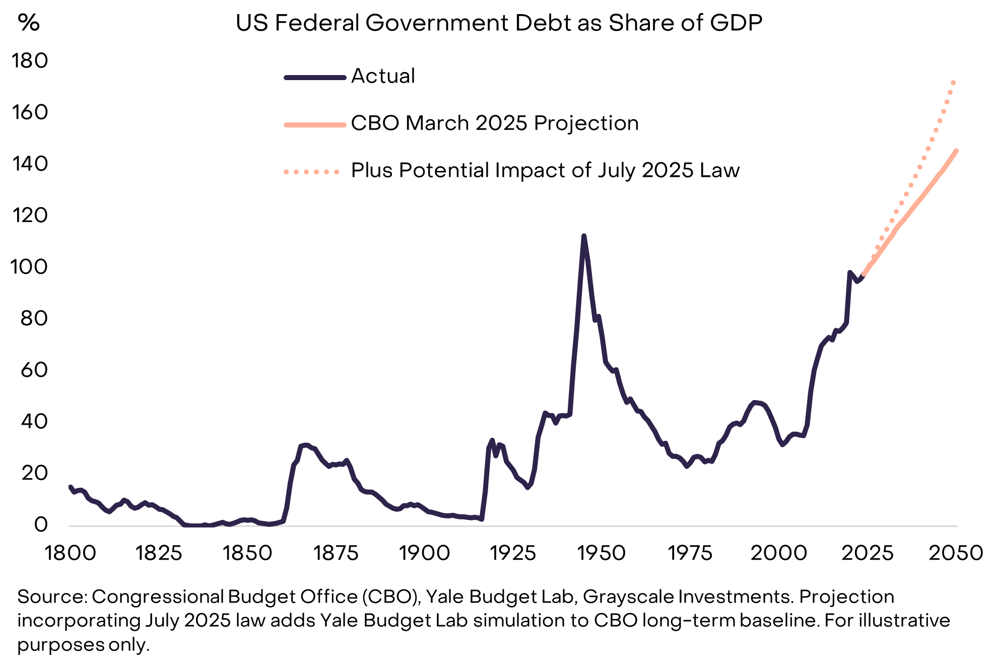 比特币和以太坊作为市值最大的两种加密货币,可以被视为稀缺的数字商品和替代型货币资产。由于公共部门债务的高企及其对长期通胀的潜在影响(见图3),法定货币(以及以法定货币计价的资产)面临额外的风险。无论是实体黄金和白银,还是数字比特币和以太坊,这些稀缺商品都有可能在投资组合中成为对冲法定货币风险的“压舱石”。在我们看来,只要法定货币贬值的风险持续上升,投资组合对比特币和以太坊的需求可能也会不断增加。