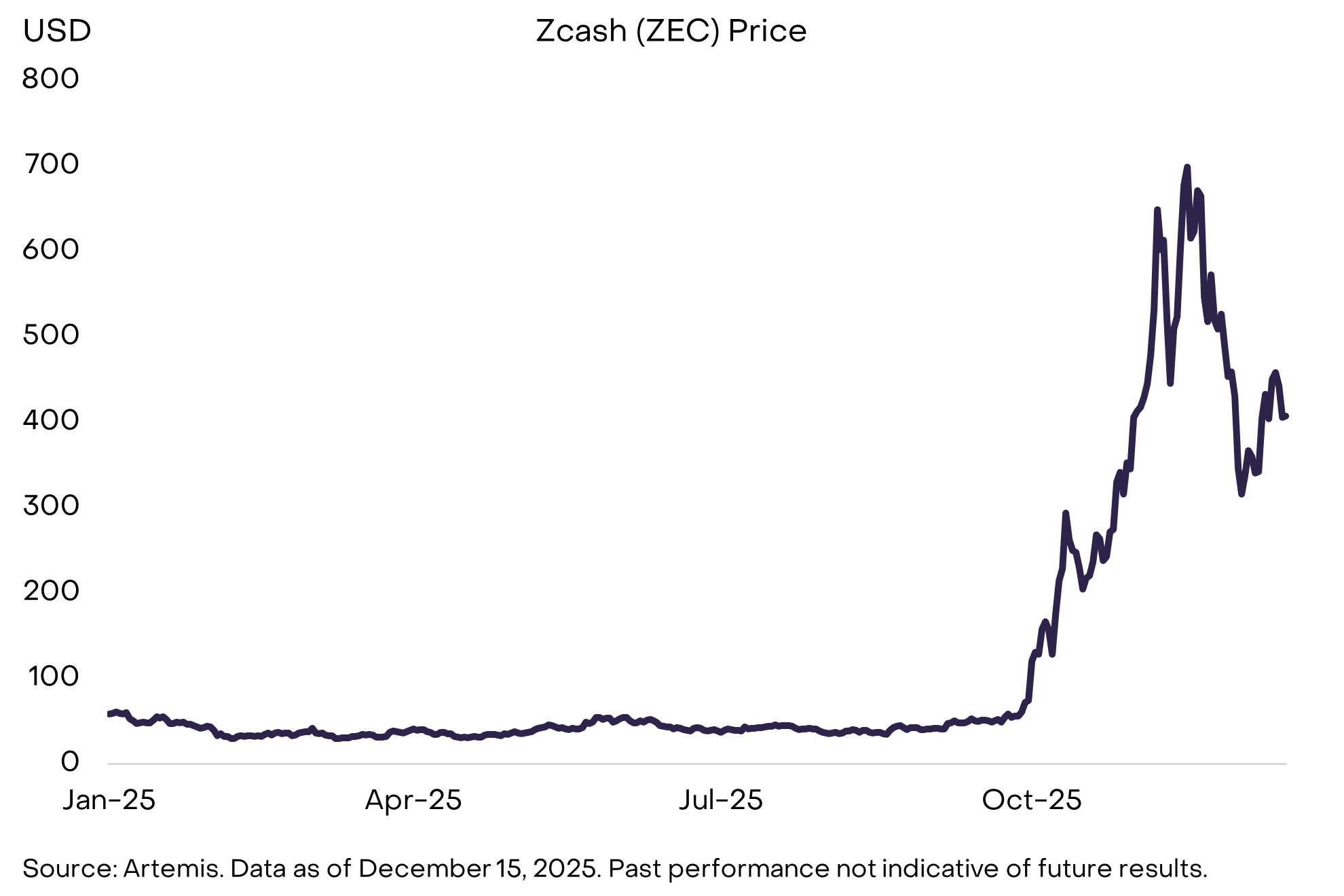 隐私是金融系统的正常组成部分:几乎所有人都希望自己的工资、税收、净资产和消费习惯不会公开在账本上。然而,大多数区块链默认是透明的。如果公共区块链想要更深入地融入金融系统,它们需要更强大的隐私基础设施——这一点随着监管推动区块链技术的整合而愈发明显。隐私功能日益受到投资者关注,潜在受益者包括 Zcash(ZEC),这是一种类似于比特币但具有隐私保护功能的去中心化数字货币;2025年第四季度,Zcash的价格大幅上涨(见图12)。其他主要项目包括 Aztec(一个专注隐私的以太坊二层网络)和 Railgun(DeFi隐私中间件)。此外,我们还可能看到在以太坊(通过 ERC-7984)和 Solana(通过 Confidential Transfers 代币扩展)等领先智能合约平台上,机密交易的采用率上升。改进隐私工具的同时,也需要更好的身份和合规基础设施来支持 DeFi。