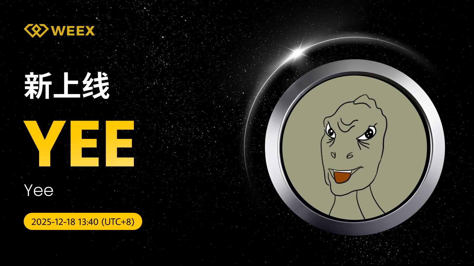 Yee (YEE) 现已上线WEEX! Weex 2025年12月18日 05:44 微信扫一扫分享到朋友或朋友圈 尊敬的WEEX用户:YEE/USDT交易对正式上线WEEX。具体安排如下:充值:即将开放交易:2025年12月18日13:40(UTC 8)正式开放提现:即将开放立即交易:YEE/USDT Yee (YEE) 更多信息:首个在以太坊上部署的 $YEE——真正的元老级模因币,在 $PEPE 推出仅 14 天后就上线了!现在由充满热情的 CTO 社区领导。 官网X账号交易手续费