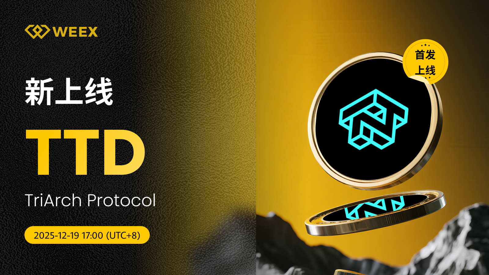 - 交易:2025年12月19日17:00(UTC 8)正式开放