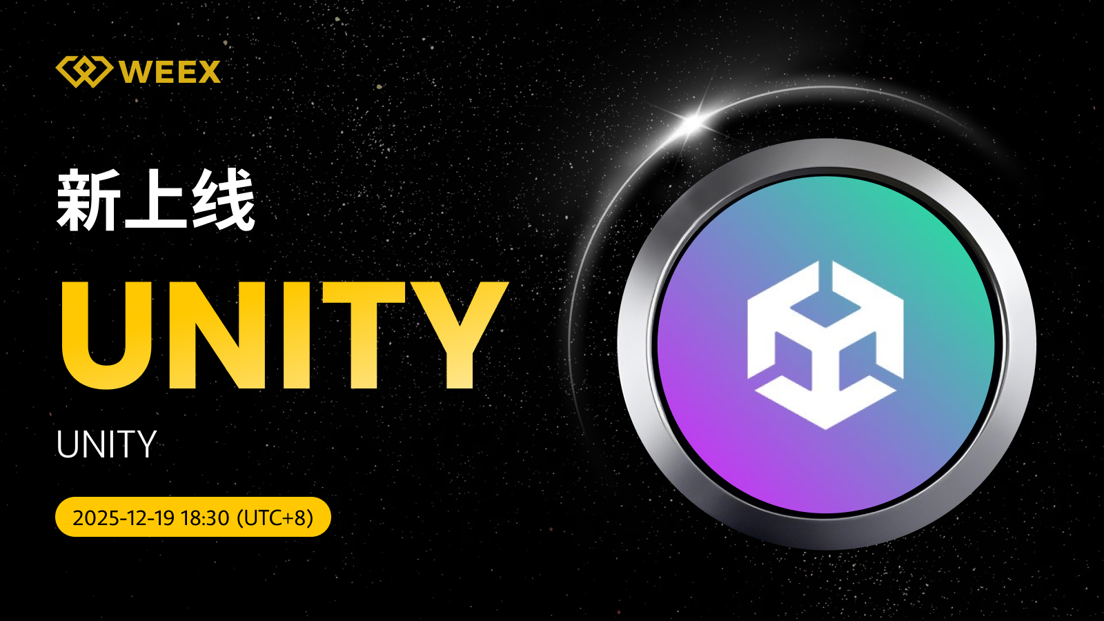 UNITY (UNITY) 现已上线WEEX! Weex 2025年12月19日 10:20 微信扫一扫分享到朋友或朋友圈 尊敬的WEEX用户:UNITY/USDT交易对正式上线WEEX。具体安排如下:充值:即将开放交易:2025年12月19日18:30(UTC 8)正式开放提现:即将开放立即交易:UNITY/USDT UNITY (UNITY) 更多信息:UNITY代币源于Unity on Solana的推文,关于Solana区块链上构建游戏与社区统一的主题,背景为Unity引擎与Solana生态的融合创新。 官网X账号交易手续费