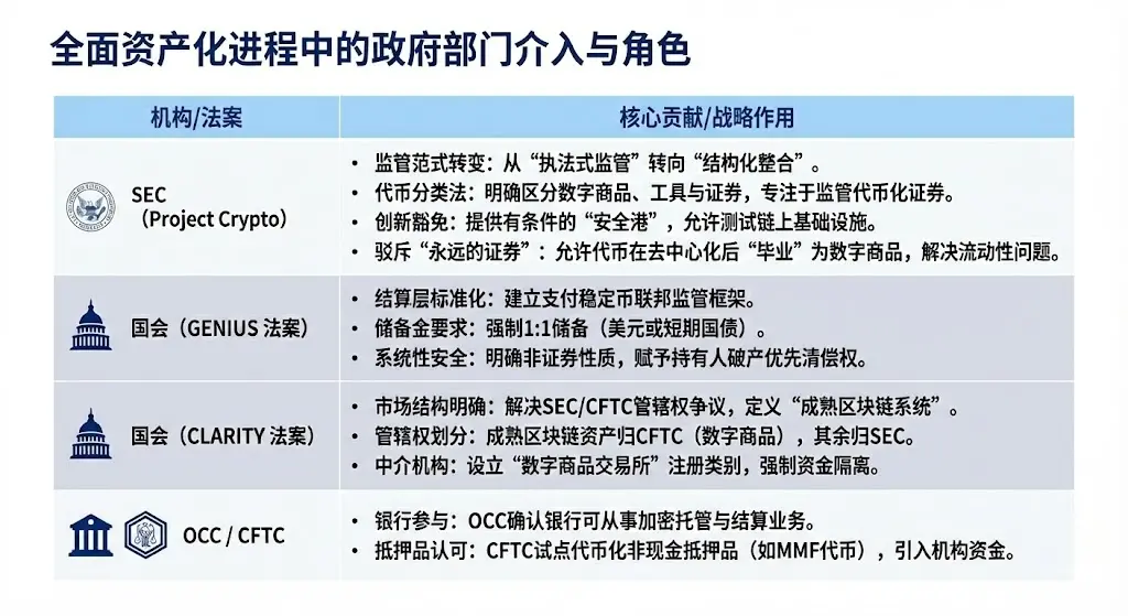 这种跨部门的协同,是美国金融市场实现全面上链的先决条件,为后续BlackRock、摩根大通等巨头大规模部署和DTCC等核心基础设施的整合奠定了坚实基础。
