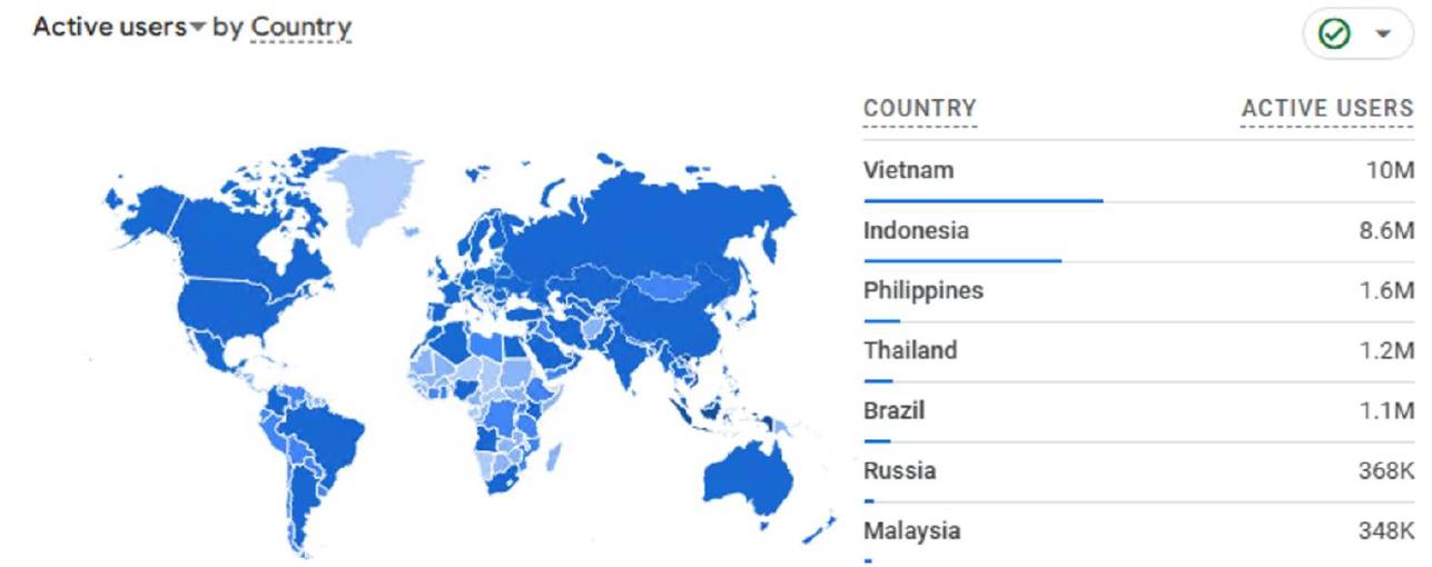 2024 年,XWorld App 收入超过 2200 万美元,而细究这 2200 万美元收入背后的用户分布与收益去向,我们可以发现 XWorld 在新兴市场展现出了强大的社会影响力: