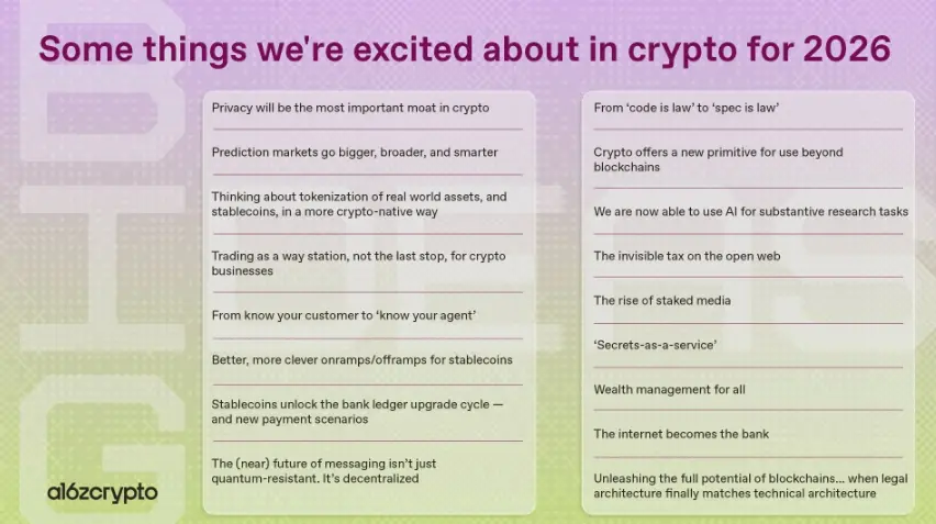 12月中旬,a16z crypto 发布了2026年加密行业趋势报告《17 things we’re excited about for crypto in 2026》。在这份报告中,a16z 强调了一个变化:稳定币规模和交易量持续扩大,正在成为一种基础型金融能力,而不是加密世界里的特殊资产。