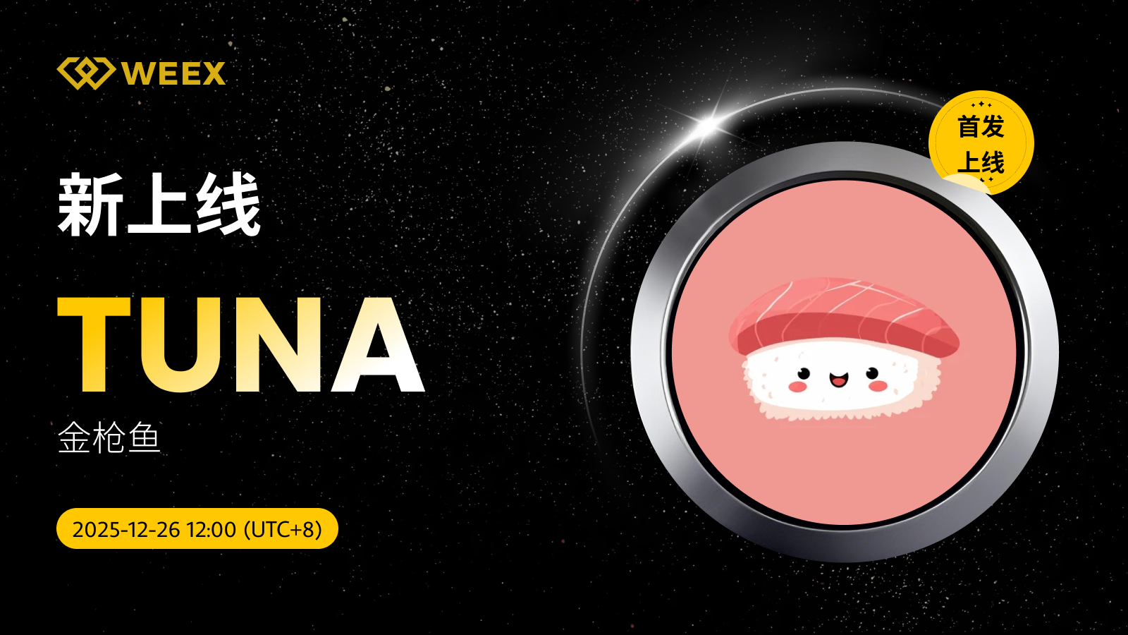 金枪鱼 (TUNA) 现已上线WEEX! Weex 2025年12月26日 03:58 微信扫一扫分享到朋友或朋友圈 尊敬的WEEX用户:TUNA/USDT交易对正式上线WEEX。具体安排如下:充值:即将开放交易:2025年12月26日12:00(UTC 8)正式开放提现:即将开放立即交易:TUNA/USDT 金枪鱼 (TUNA) 更多信息:TUNA代币源于Twitter社区关于可爱金枪鱼寿司的推文分享,背景为粉丝们围绕萌趣食物meme的互动狂欢。 官网X账号交易手续费