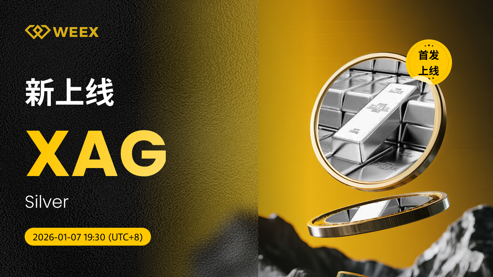 Silver (XAG) 现已上线WEEX! Weex 2026年01月07日 10:28 微信扫一扫分享到朋友或朋友圈 尊敬的WEEX用户:XAG/USDT交易对正式上线WEEX。具体安排如下:充值:即将开放交易:2026年01月07日19:30(UTC 8)正式开放提现:即将开放立即交易:XAG/USDT Silver (XAG) 更多信息:SILVER 合约是以国际现货白银(XAG)价格为标的的数字化衍生品。价格实时锚定全球主流市场的白银价格源。 交易手续费