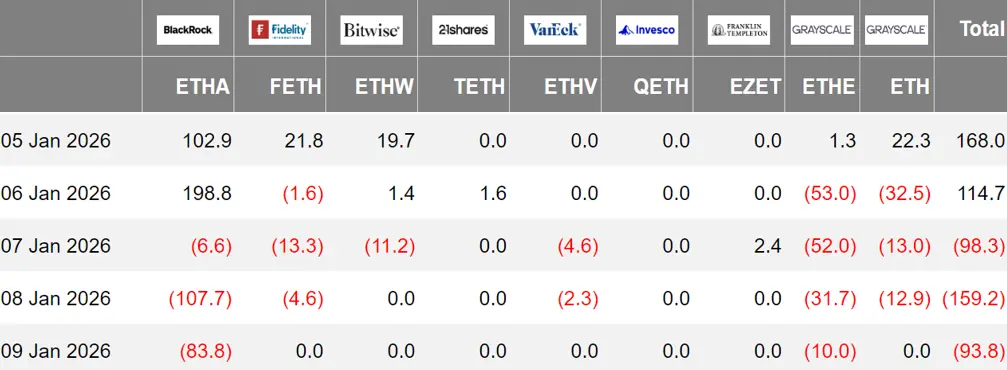 上周流出主要来自灰度 ETHE,净流出 1.45 亿美元。3 只以太坊现货 ETF 处于净流处状态。