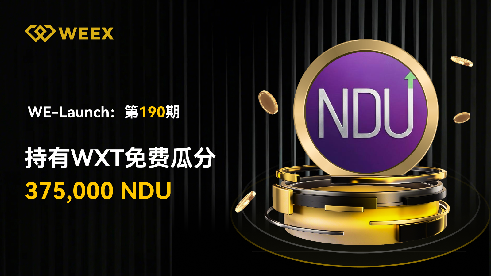 活动期间,通过 WE-Launch 投入 WXT或NDU,您将有机会免费瓜分375,000 NDU代币!