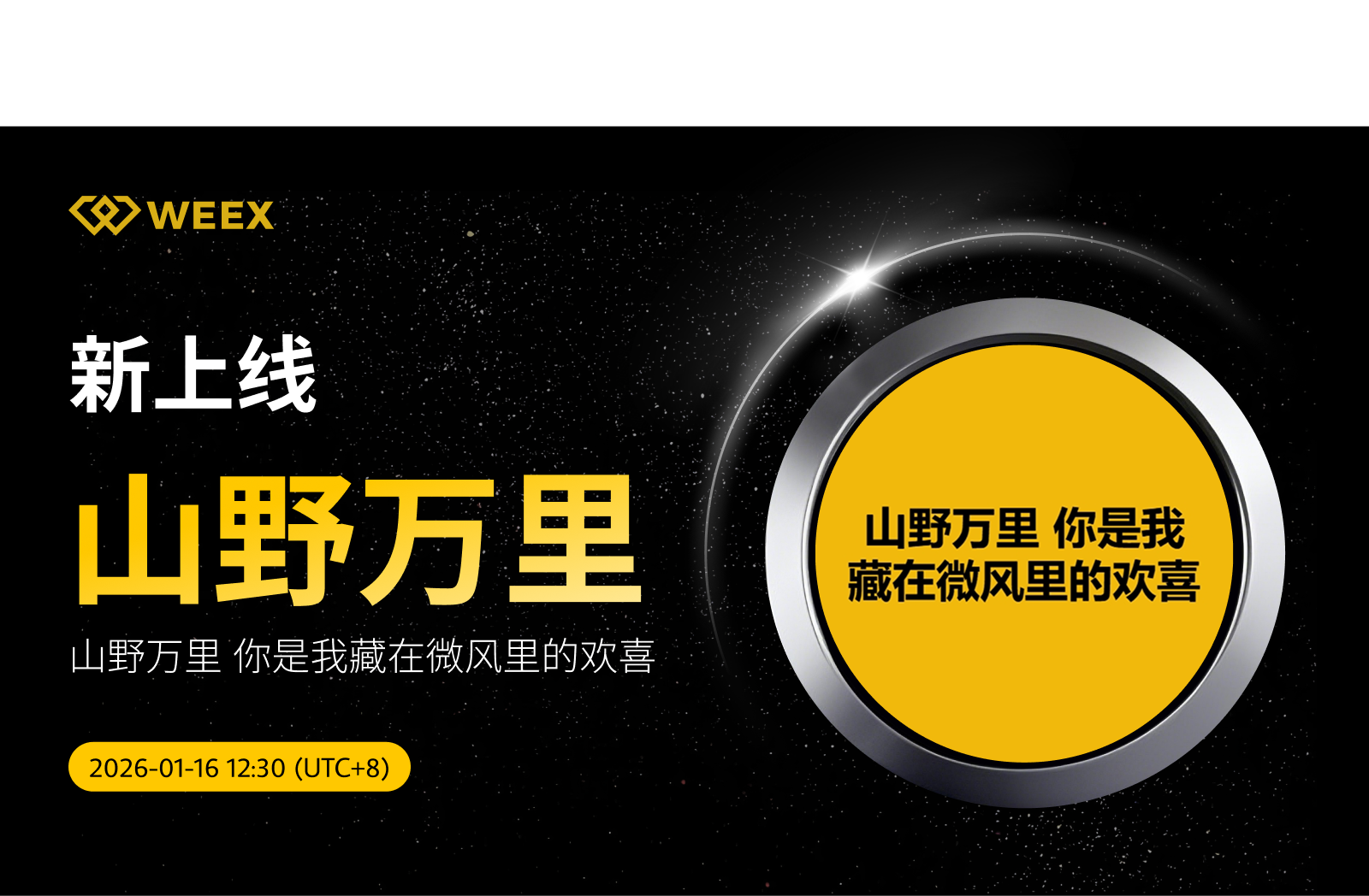 山野万里 你是我藏在微风里的欢喜 (山野万里) 现已上线WEEX! Weex 2026年01月16日 04:26 微信扫一扫分享到朋友或朋友圈 尊敬的WEEX用户:山野万里/USDT交易对正式上线WEEX。具体安排如下:充值:即将开放交易:2026年01月16日12:30(UTC 8)正式开放提现:即将开放立即交易:山野万里/USDT 山野万里 你是我藏在微风里的欢喜 (山野万里) 更多信息:CZ 参与的一场 AMA 中某位 KOL 的表白。 X accountTrading fees