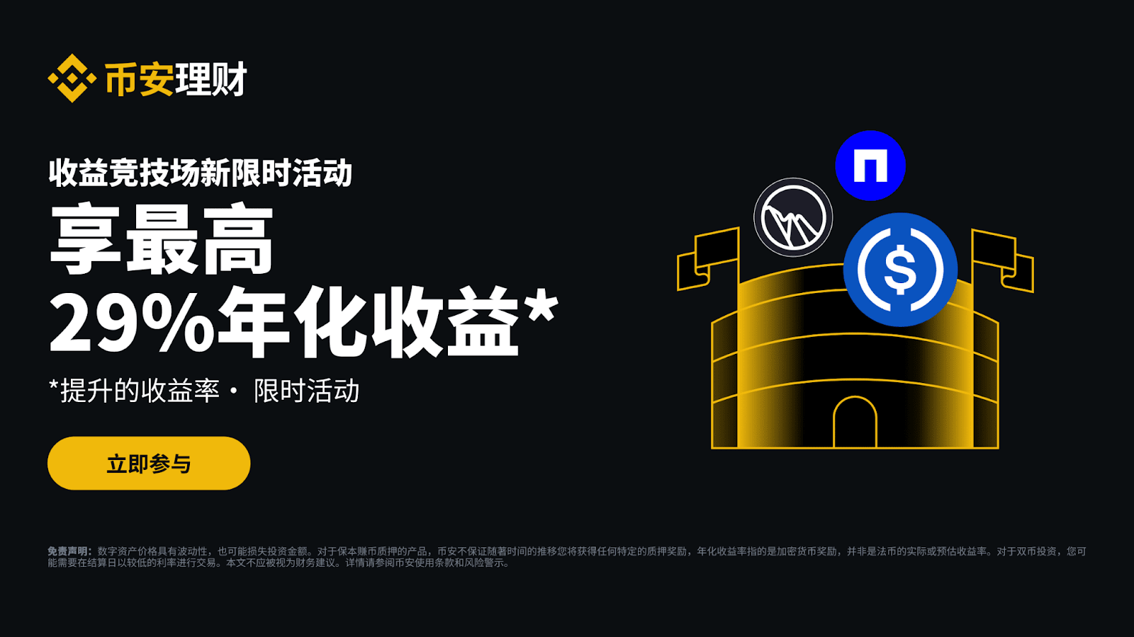币安理财竞技场:最高可享29%年化收益率,每周新限时活动不容错过(2026-01-21)