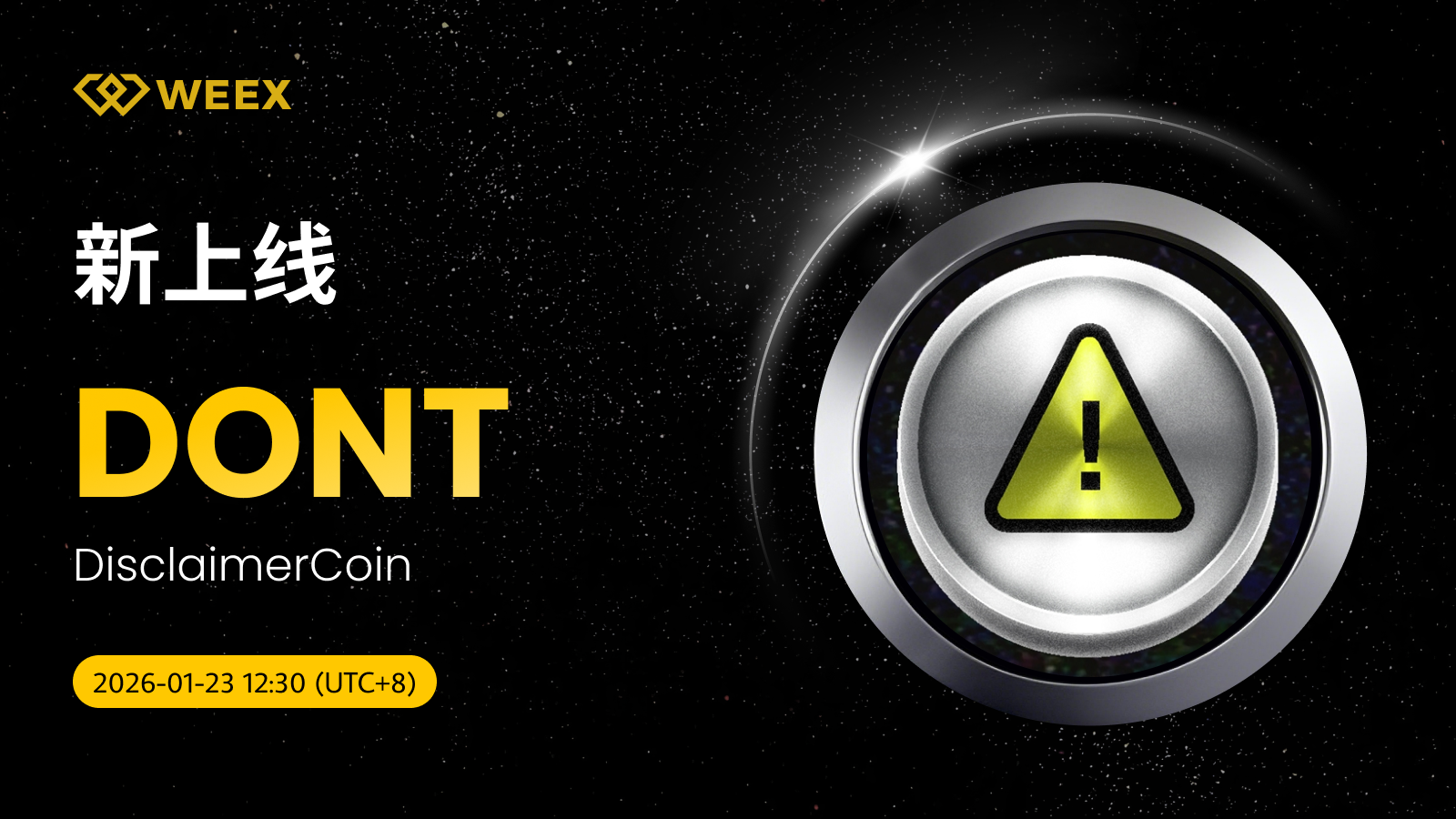DisclaimerCoin (DONT) 现已上线WEEX! Weex 2026年01月23日 04:46 微信扫一扫分享到朋友或朋友圈 尊敬的WEEX用户:DONT/USDT交易对正式上线WEEX。具体安排如下:充值:即将开放交易:2026年01月23日12:30(UTC 8)正式开放提现:即将开放立即交易:DONT/USDT DisclaimerCoin (DONT) 更多信息:DONT代币源于DisclaimerCoin推特关于免责声明的推文。 WebsiteX accountTrading fees