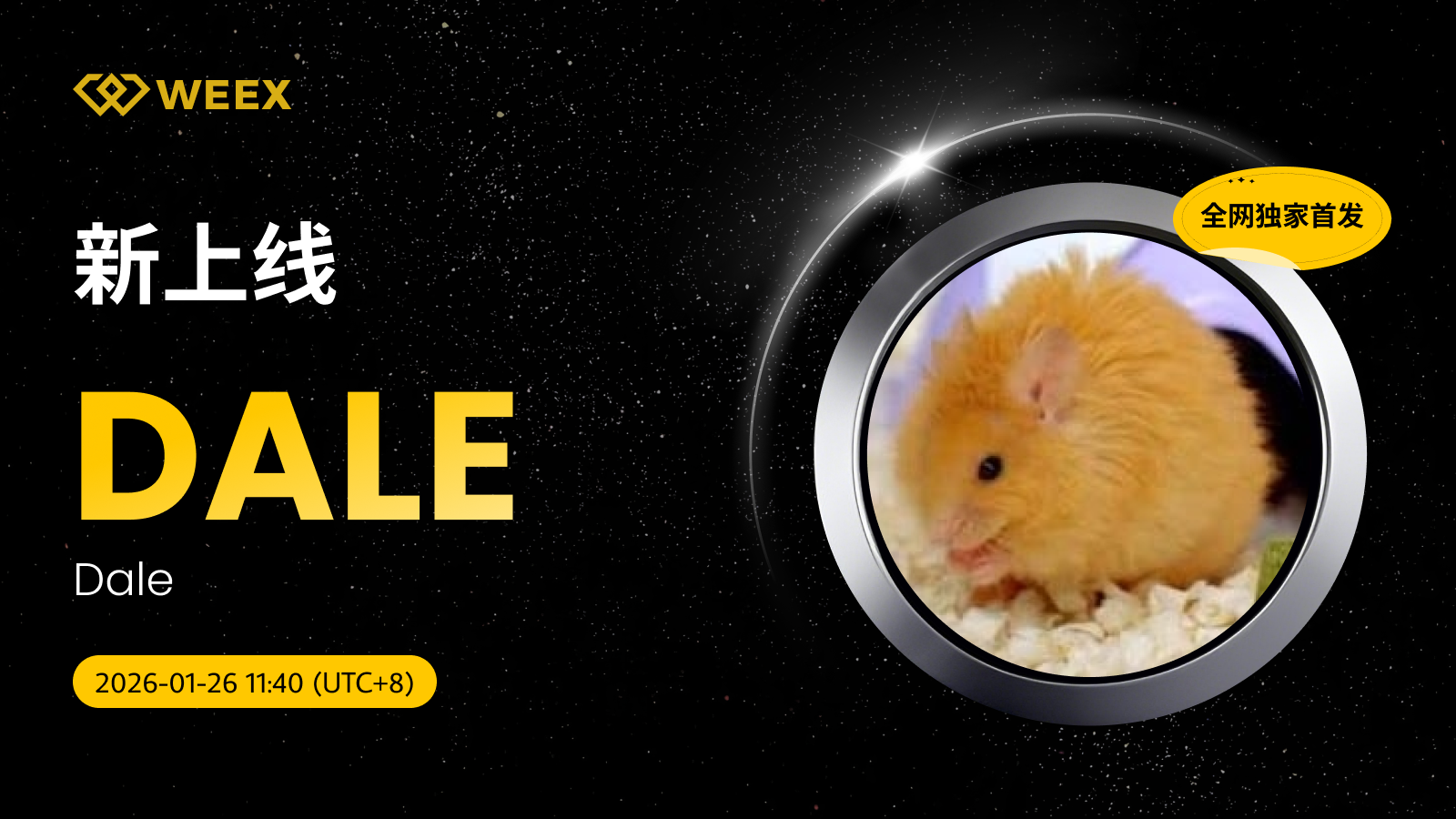 【全网独家首发】Dale (DALE) 现已上线WEEX! Weex 2026年01月26日 03:47 微信扫一扫分享到朋友或朋友圈 尊敬的WEEX用户:DALE/USDT交易对正式上线WEEX。具体安排如下:充值:即将开放交易:2026年01月26日11:40(UTC 8)正式开放提现:即将开放立即交易:DALE/USDT Dale (DALE) 更多信息:价值 4 亿美元的毛绒老鼠戴尔。 WebsiteX accountTrading fees