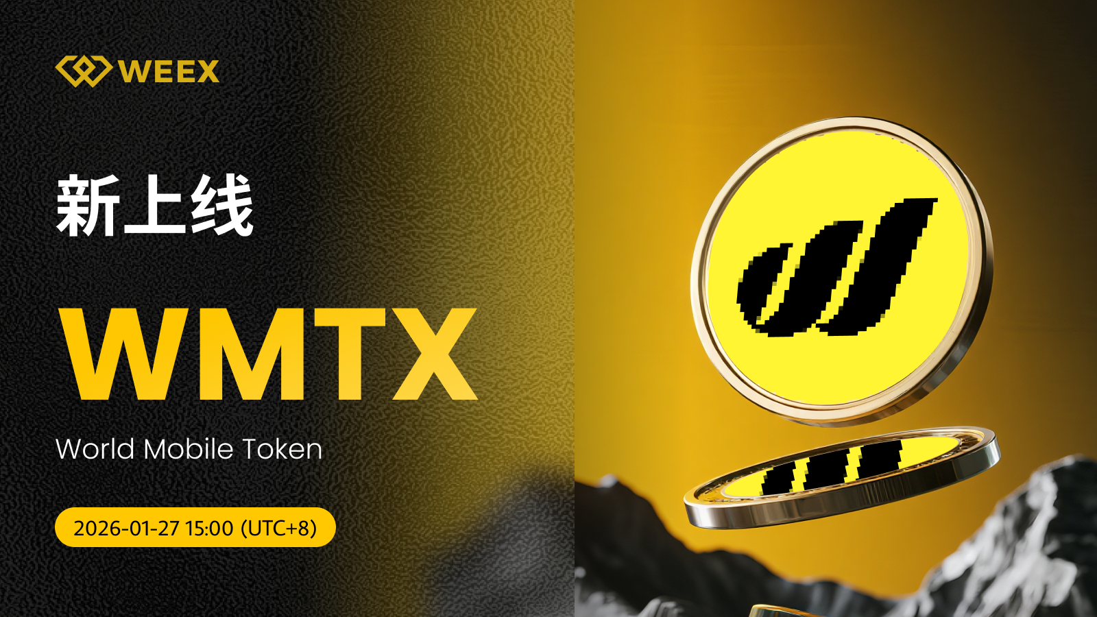 WMTX/USDT交易对正式上线WEEX。具体安排如下:
