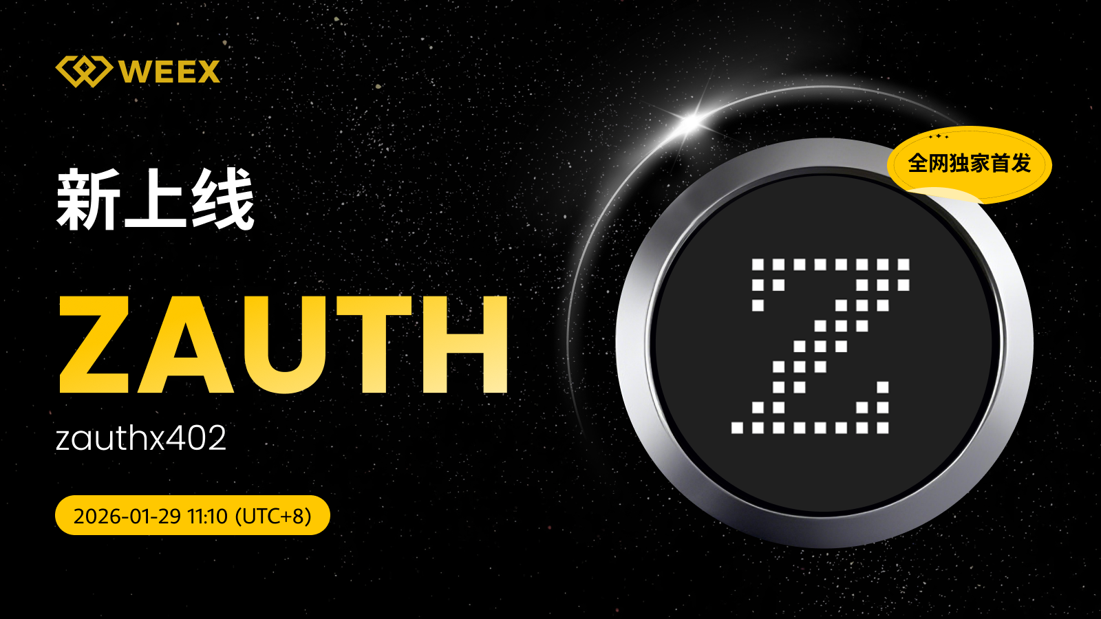 【全网独家首发】zauthx402 (ZAUTH) 现已上线WEEX! Weex 2026年01月29日 03:18 微信扫一扫分享到朋友或朋友圈 尊敬的WEEX用户:ZAUTH/USDT交易对正式上线WEEX。具体安排如下:充值:即将开放交易:2026年01月29日11:10(UTC 8)正式开放提现:即将开放立即交易:ZAUTH/USDT zauthx402 (ZAUTH) 更多信息:为自主经济构建信任基础设施。 WebsiteX accountTrading fees