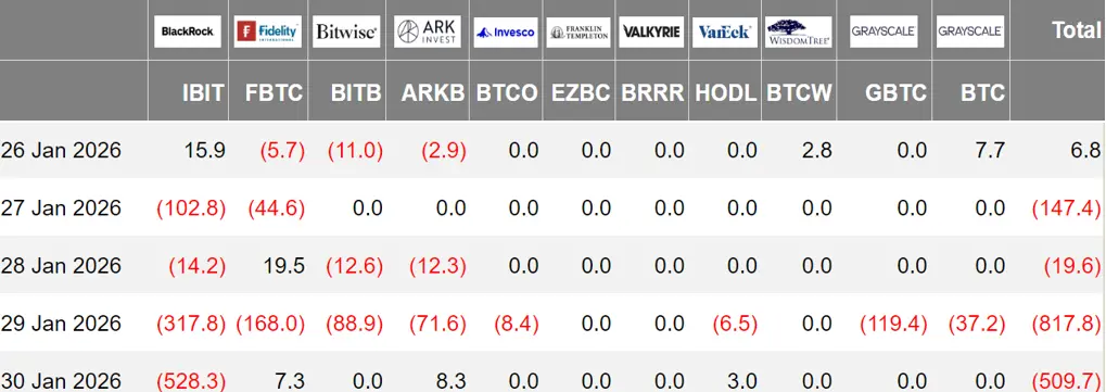 上周 8 只 ETF 处于净流出状态,流出主要来自 IBIT、FBTC、GBTC,分别流出 9.63 亿美元、1.91 亿美元、1.19 亿美元。