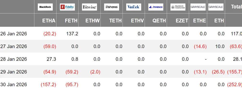 上周流出主要来自贝莱德 ETHA,净流出 2.64 亿美元。5 只以太坊现货 ETF 处于净流出状态。