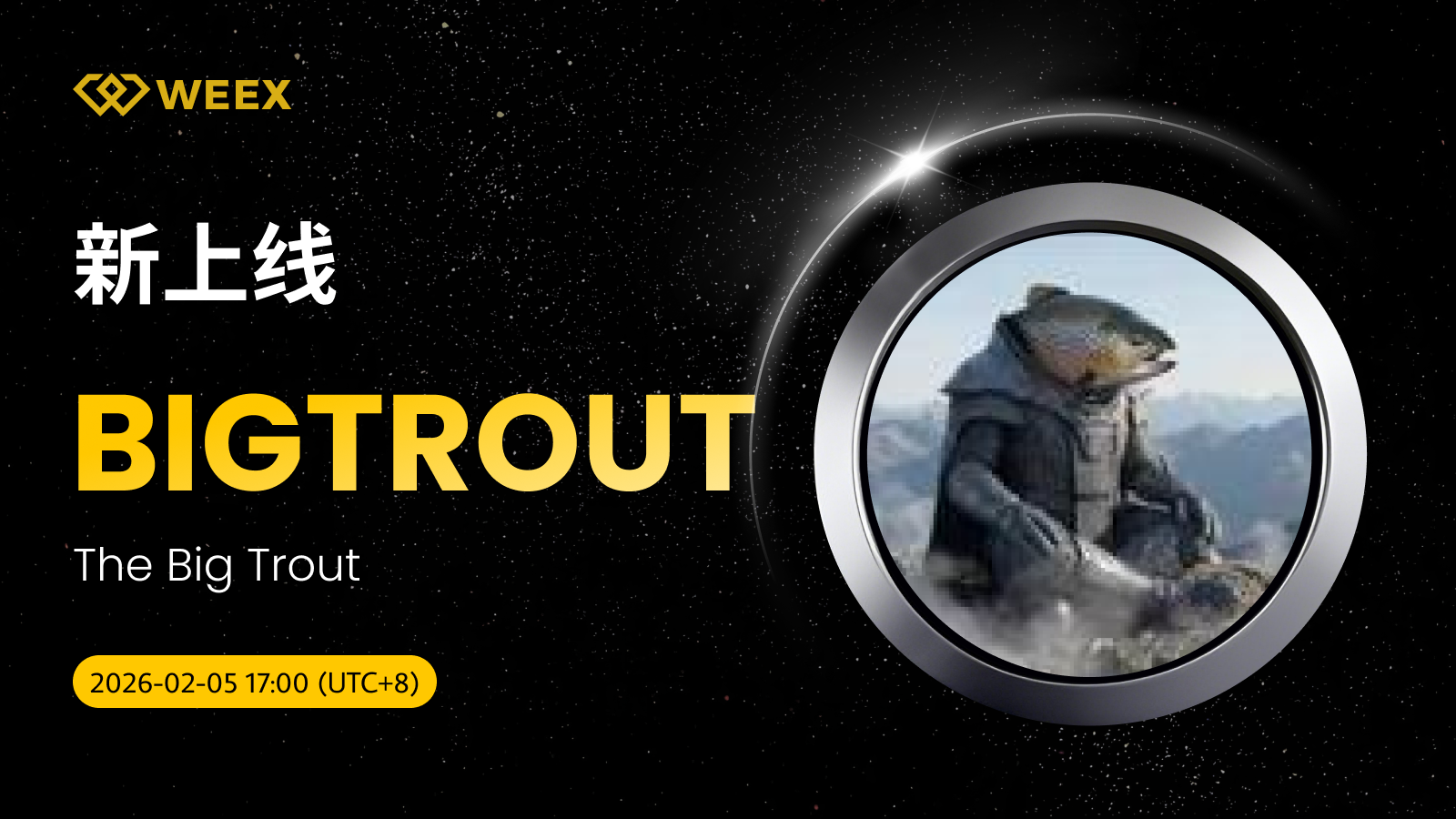 The Big Trout (BIGTROUT) 现已上线WEEX! Weex 2026年02月05日 09:05 微信扫一扫分享到朋友或朋友圈 尊敬的WEEX用户:BIGTROUT/USDT交易对正式上线WEEX。具体安排如下:充值:即将开放交易:2026年02月05日17:00(UTC 8)正式开放提现:即将开放立即交易:BIGTROUT/USDT The Big Trout (BIGTROUT) 更多信息:大鳟鱼。 X accountTrading fees