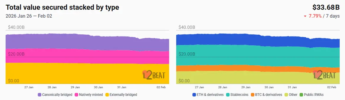 据L2Beat数据显示,以太坊 Layer 2总TVL为336.8亿美元,本周较上周366.4亿美元,下降约 8.1%。