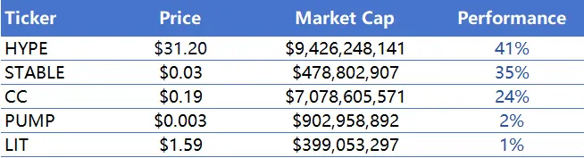 本周链上DEX日成交量方面,整体走强,头部公链分化明显。Ethereum为33亿美元,上升约192.7%;Solana为47.1亿美元,上升约49.4%;BNB Chain为18亿美元,上升约13.2%。Sui 回升至 2.0 亿美元,上升约65.3%;Aptos 升至 0.8 亿美元,上升约14.7%;TON 回落至 0.05 亿美元,下降约26.5%。交易费用方面,Ethereum 升至0.02美元,Solana升至0.003美元;Sui降至0.002 美元,Aptos降至0.000001 美元;BNB Chain与TON分别维持在0.01 美元。