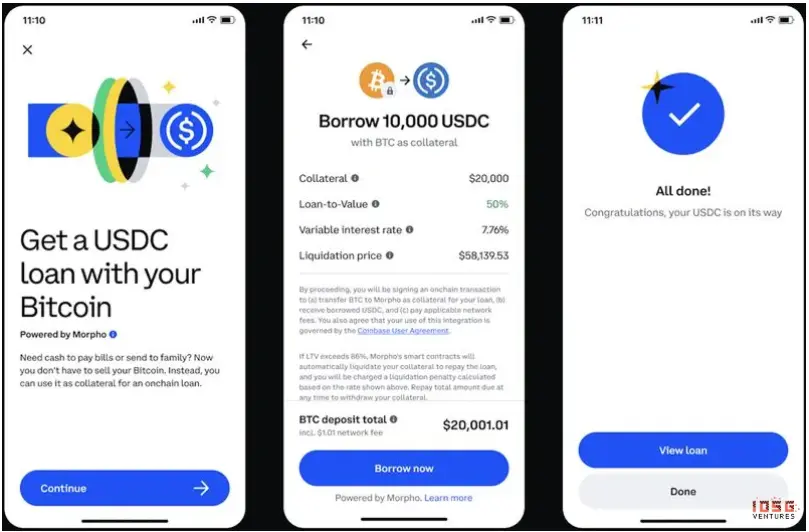 而 Coinbase 则选择另一条路径,将其借贷产品(USDC 借贷及 XRP、ADA 等资产抵押借款)的后端交由第三方 Curator Steakhouse Financial 在 Morpho 上管理——前端是用户熟悉的 Fintech 界面,后端由 DeFi 驱动,即所谓的“DeFi Mullet”模式。