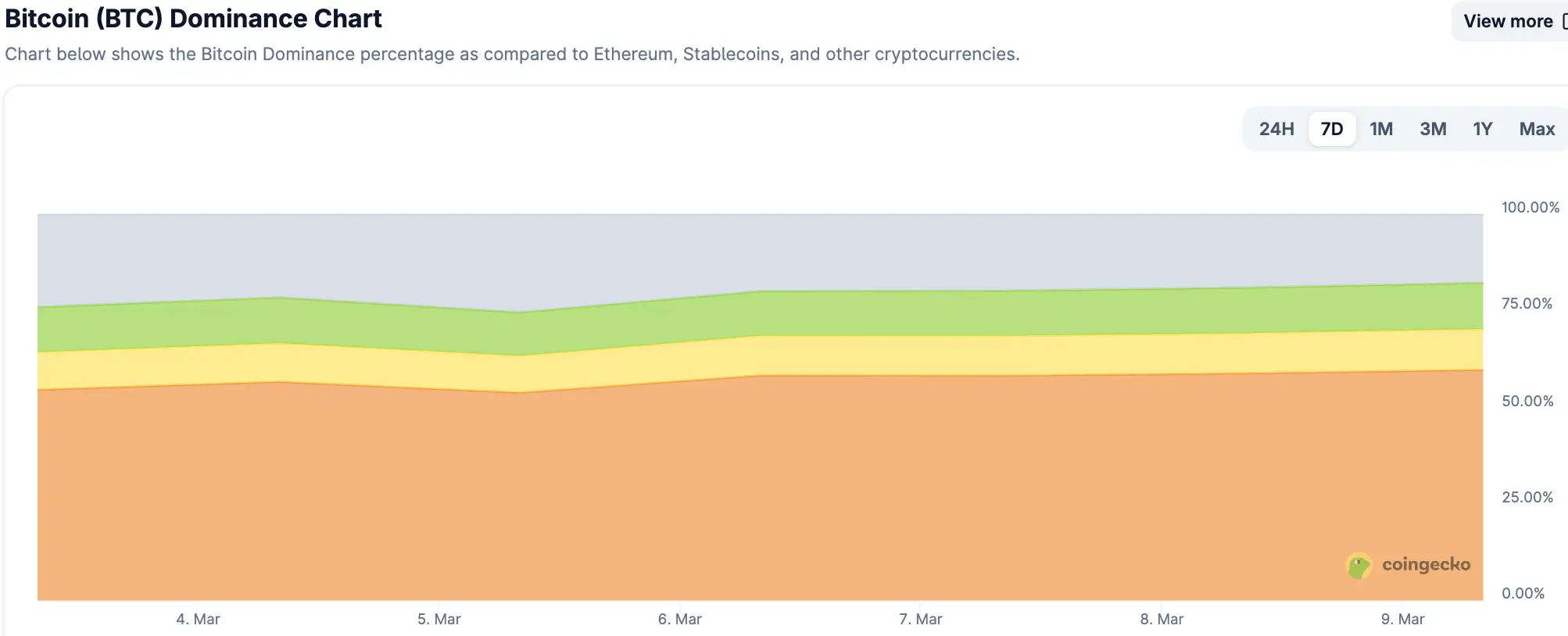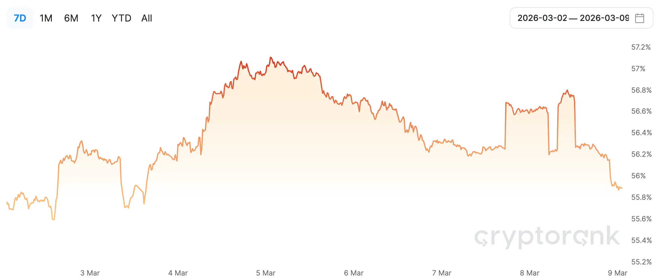 数据来源:Bitcoin dominance from cryptorank, https://cryptorank.io/charts/btc-dominance