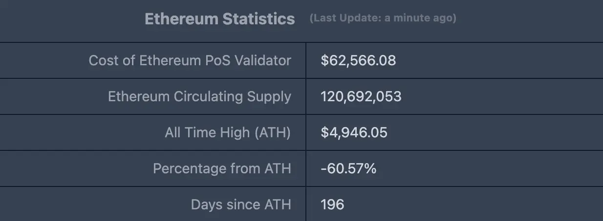 ETHUSD :现价$1,956.59,历史最高价$4,946.05,距最高价跌幅约60.57%