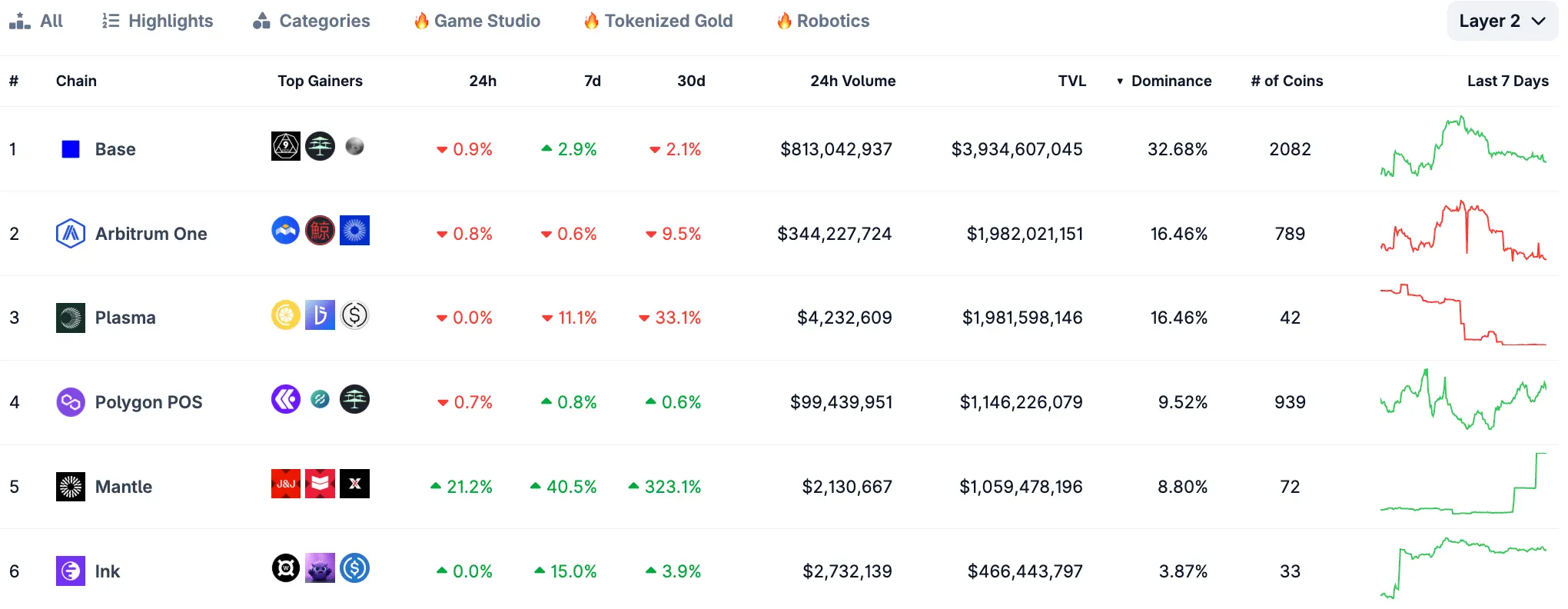 数据来源:CoinGecko, https://www.coingecko.com/en/chains/layer-2