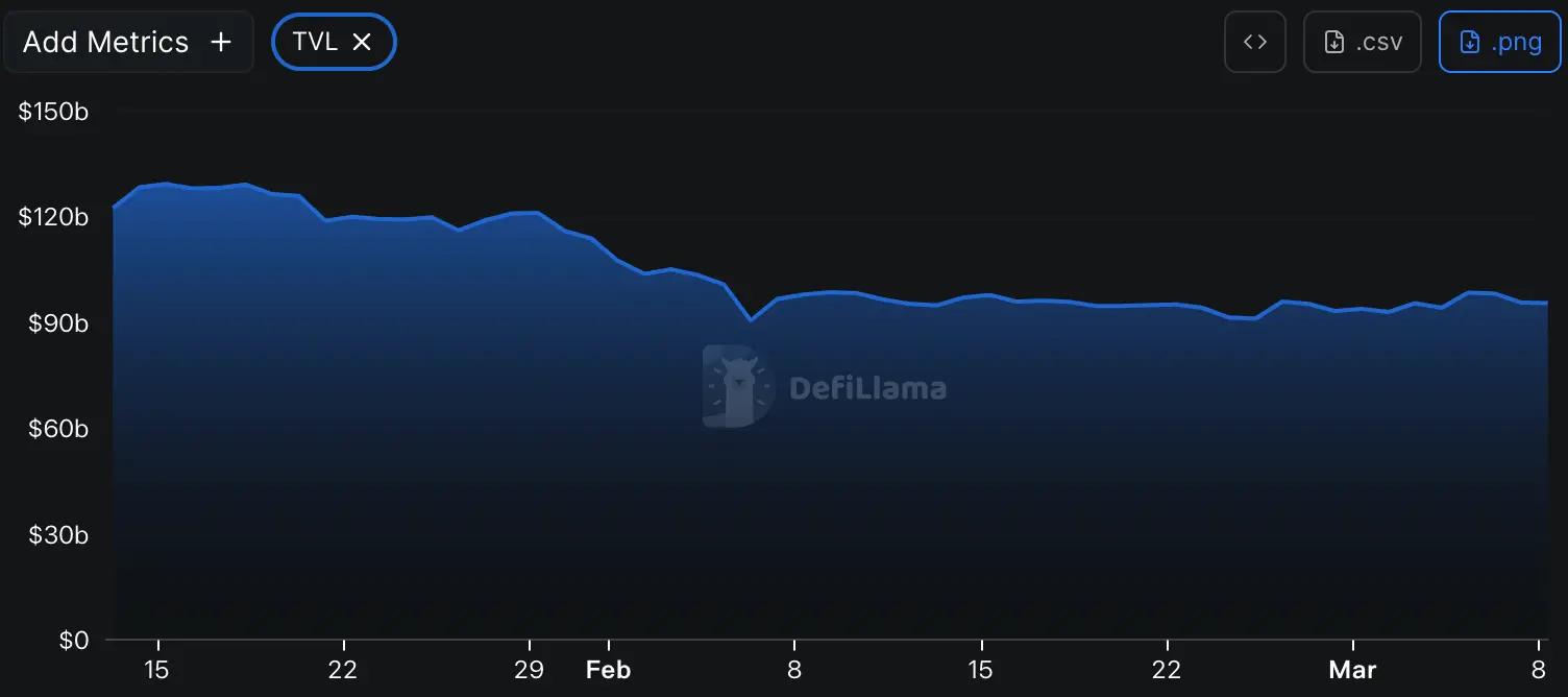 据DeFiLlama的数据,本周DeFi总TVL为$955.05亿,较上周$931.43亿,上升约2.53%。