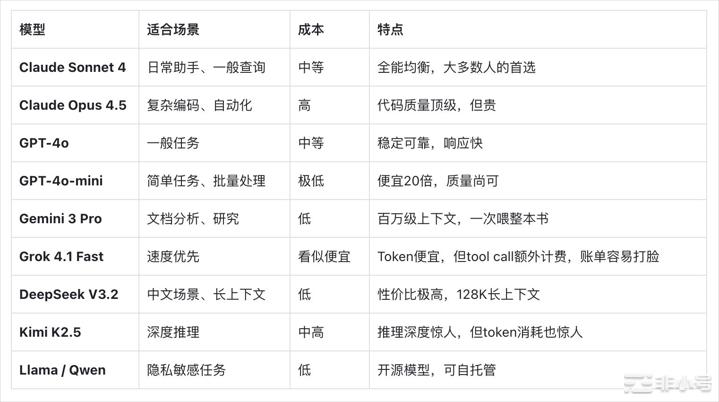 OpenClaw最大的优势是可以自己选“大脑”。不同模型在它身上表现天差地别: