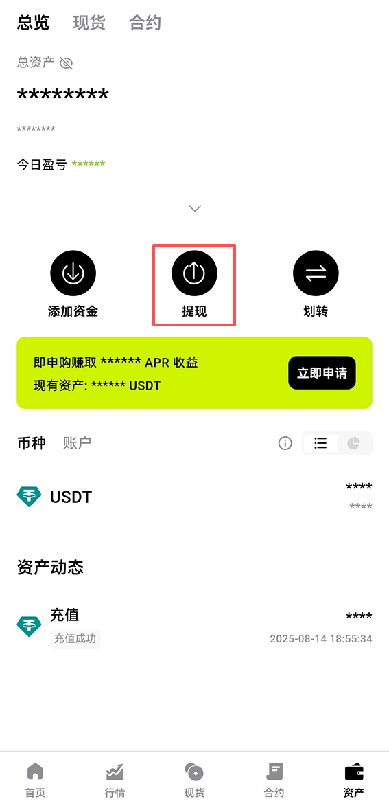 打开 BitTap APP → 资产 →提币