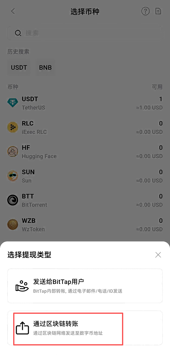 BitTap加密货币提币流程