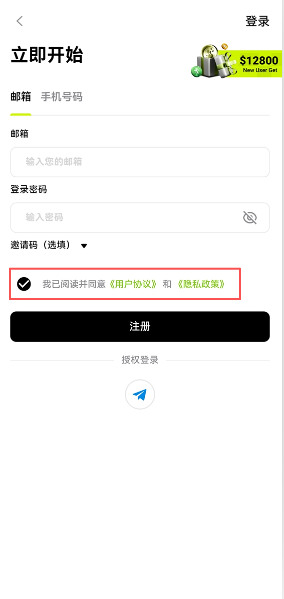 如何注册 BitTap 账号 BitTap 2026年03月16日 10:03 微信扫一扫分享到朋友或朋友圈 手机打开BitTap APP,点击“立即开始-注册”按钮 第一步:填写注册信息 输入您的手机号或邮箱,设置包含字母+数字的安全密码。如有邀请码,可在下方填写。 第二步:接受协议并验证 勾选同意用户协议,点击获取验证码。查收短信或邮件,输入6位验证码完成验证。 第三步:注册成功与安全设置 注册成功!强烈建议立即开启双重验证(2FA),为您的资产加上第二道锁