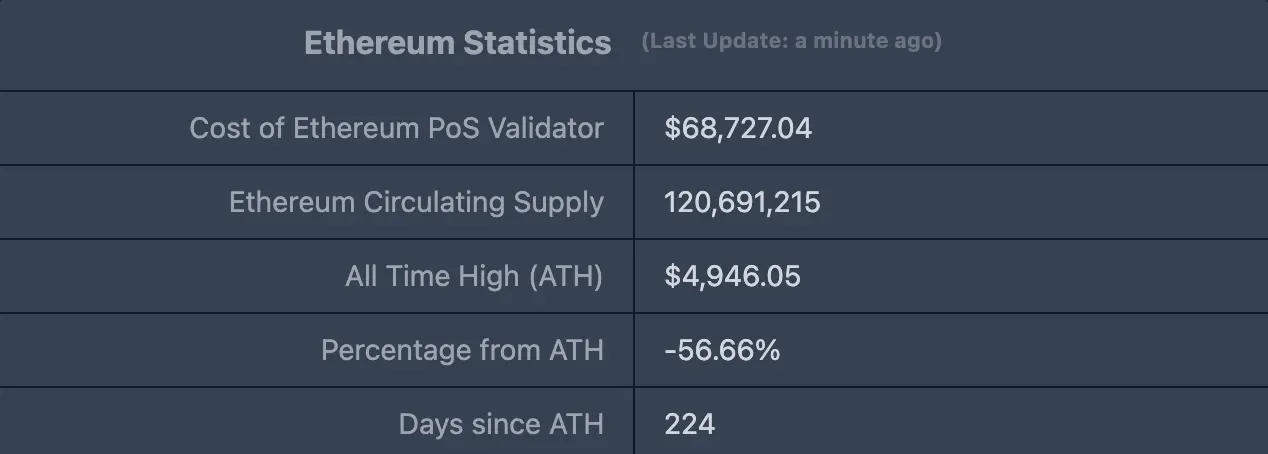 ETHUSD :现价$2,146.74,历史最高价$4,946.05,距最高价跌幅约56.66%