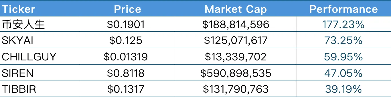 过去一周内涨幅前五的Meme币
