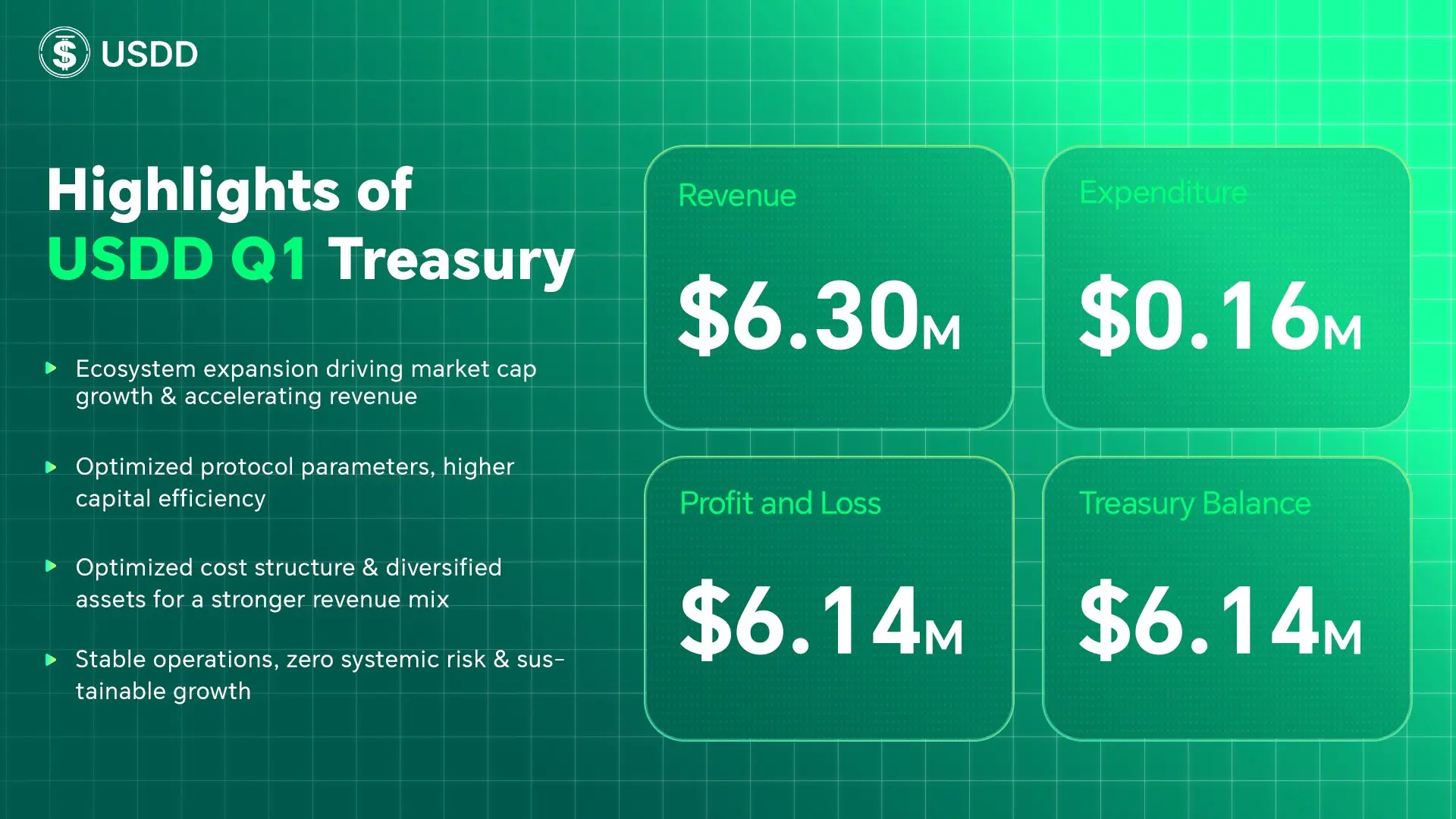 USDD 2026 年第一季度业绩全面提速:收入与利润显著增长,总金库余额升至 1391 万美元